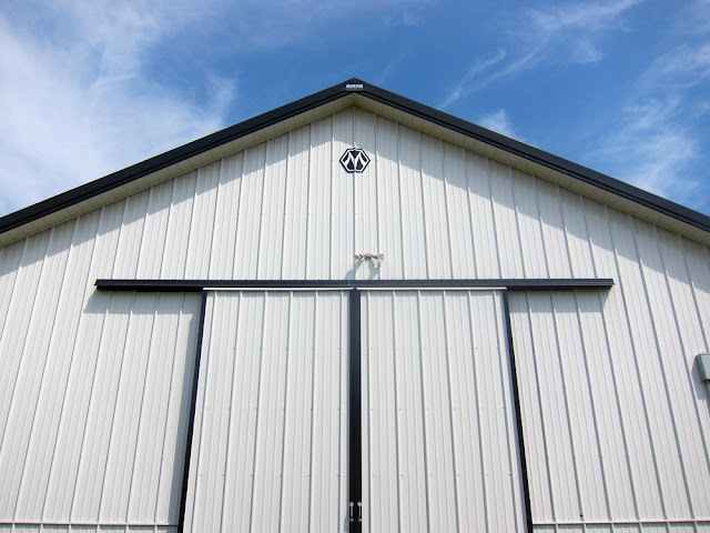 Rhett and I ventured out there this past weekend and had a look around to refresh my memory on the space and give him a first look. He could not possibly care less about any aspect of the wedding. He cares about the food, I guess, but that's all. He's not a fan of weddings, but I'm just going to pretend he is. He's great about humoring me and letting me ramble about wedding stuff! Anyway, I'm getting off topic...so the venue. I took a few pictures of the barn where we'll have the reception. It's a working horse barn, so it's not reception-ready inside at the moment. I promise you it'll be cute though! The shot above is the side of the reception area, and if the weather is good we'll have those windows open.